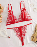 Natteøjne Knipling V-Hals Sløjfe Dekoration Ærmeløs Babydoll Sexig Gennemsigtig Teddy