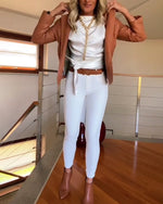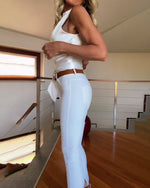 Hvid top uden ærmer med taljebinding