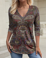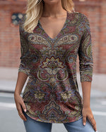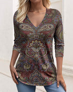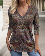 SPECIFIKATIONER Top type: Bluser Stil: Afslappet Materiale: Bomuldsblanding Lejlighed: Daglig Halsudskæring: Revers Mønstertype: Tryk Ærmetype: Flagermuse-ærmer Ærmelængde: Trekvartærmet Pasform: Almindelig Sæson/årstid: Forår,Sommer Detaljer: Spænde,Uregelmæssig Pakken inkluderer: 1 x Bluse STØRRELSESTABEL (cm) Størrelse Buste Længde S 97...