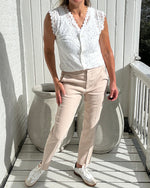 Top Blonde Hæklet Sammensyning Lange Ærmer