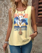 SPECIFIKATIONER Top type: Tank top Stil: Afslappet Materiale: Bomuldsblanding Lejlighed: Daglig Halsudskæring: V-udskæring Mønstertype: Tryk Ærmelængde: Uden ærmer Pasform: Almindelig Sæson/årstid: Forår,Sommer Detaljer: Rynket Pakken inkluderer: 1 x Tank top STØRRELSESTABEL (cm) Størrelse Buste Længde S 97 68 M 101 69.5 L 105 71 XL ...