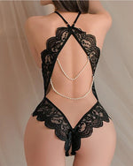 Natteøjne Knipling V-Hals Sløjfe Dekoration Ærmeløs Babydoll Sexig Gennemsigtig Teddy