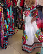 SPECIFIKATIONER Stil: Afslappet Materiale: Bomuldsblanding Kjoletype: A-linje Kjolelængde: Maxi Halsudskæring: V-udskæring Mønstertype: Tryk Ærmetype: Drop Shoulder Ærmelængde: Trekvartærmet Detaljer: Knapper Pasform: Almindelig Sæson/årstid: Forår,Sommer Lejlighed: Daglig Pakken inkluderer: 1 x Kjole STØRRELSESTABEL (cm) Størrelse Buste Læn...
