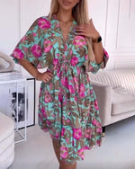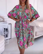 SPECIFIKATIONER Stil: Afslappet Materiale: Bomuldsblanding Kjoletype: A-linje Kjolelængde: Maxi Halsudskæring: V-udskæring Mønstertype: Tryk Ærmetype: Drop Shoulder Ærmelængde: Trekvartærmet Detaljer: Knapper Pasform: Almindelig Sæson/årstid: Forår,Sommer Lejlighed: Daglig Pakken inkluderer: 1 x Kjole STØRRELSESTABEL (cm) Størrelse Buste Læn...