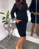 SPECIFIKATIONER Stil: Afslappet Materiale: Bomuldsblanding Kjoletype: A-linje Kjolelængde: Over knæet Halsudskæring: Ståkrave Mønstertype: Farveblok Ærmetype: Almindeligt ærme Ærmelængde: Trekvartærmet Detaljer: Lynlås Pasform: Almindelig Sæson/årstid: Forår,Efterår Lejlighed: Daglig Pakken inkluderer: 1 x Kjole STØRRELSESTABEL (cm) Stør...