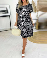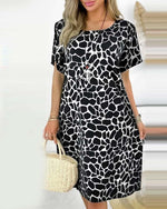 Kjole Rund hals Trykket Korte ærmer Hofte
