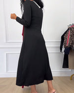 Kjole V-Udskæring Langærmede Patchwork