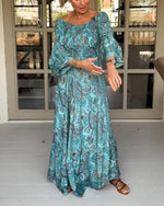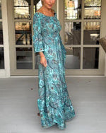 SPECIFIKATIONER Stil: Afslappet Materiale: Bomuldsblanding Kjoletype: A-linje Kjolelængde: Maxi Halsudskæring: V-udskæring Mønstertype: Tryk Ærmetype: Drop Shoulder Ærmelængde: Trekvartærmet Detaljer: Knapper Pasform: Almindelig Sæson/årstid: Forår,Sommer Lejlighed: Daglig Pakken inkluderer: 1 x Kjole STØRRELSESTABEL (cm) Størrelse Buste Læn...