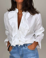 SPECIFIKATIONER Top type: Toppe Stil: Afslappet Materiale: Spandex,Polyester Lejlighed: Daglig Halsudskæring: V-udskæring Ærmetype: Almindeligt ærme Ærmelængde: Langærmet Pasform: Almindelig Sæson/årstid: Forår,Efterår Detaljer: Knapper,Rynket Pakken inkluderer: 1 x Top STØRRELSESTABEL (cm) Størrelse Buste Længde S 97 65 M 101 66.5 L 1...