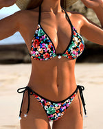 Halterneck bikini med farverigt print