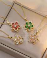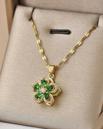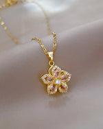 Fem-bladet 360° roterende blomstervedhæng halskæde
