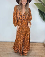 SPECIFIKATIONER Stil: Afslappet Materiale: Bomuldsblanding Kjoletype: Shift-kjole Kjolelængde: Maxi Halsudskæring: V-udskæring Mønstertype: Tryk Ærmetype: Vidærmet Ærmelængde: Langærmet Pasform: Almindelig Sæson/årstid: Forår,Sommer Lejlighed: Daglig Pakken inkluderer: 1 x Kjole STØRRELSESTABEL (cm) Størrelse Buste Længde S 97 130 M 101 ...
