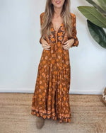 SPECIFIKATIONER Stil: Afslappet Materiale: Bomuldsblanding Kjoletype: Shift-kjole Kjolelængde: Maxi Halsudskæring: V-udskæring Mønstertype: Tryk Ærmetype: Almindeligt ærme Ærmelængde: Langærmet Detaljer: Patchwork Pasform: Almindelig Sæson/årstid: Forår,Efterår Lejlighed: Daglig Pakken inkluderer: 1 x Kjole STØRRELSESTABEL (cm) Størrelse Bus...