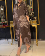 SPECIFIKATIONER Stil: Afslappet Materiale: Bomuldsblanding Kjoletype: Shift-kjole Kjolelængde: Maxi Halsudskæring: V-udskæring Mønstertype: Tryk Ærmetype: Drop Shoulder Ærmelængde: Langærmet Detaljer: Knapper Pasform: Almindelig Sæson/årstid: Forår,Efterår,Vinter Lejlighed: Daglig Pakken inkluderer: 1 x Kjole STØRRELSESTABEL (cm) Størrelse B...